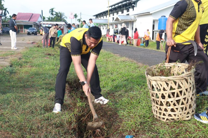 Britajambi.id – Polres Tanjung Jabung Timur bersama TNI, Pemerintah Kabupaten Tanjung Jabung Timur, serta siswa dan pelajar melaksanakan kegiatan gotong royong sebagai bentuk implementasi Instruksi Presiden Republik Indonesia dalam menjaga kebersihan dan kelestarian lingkungan, Jumat (6/2/2026).